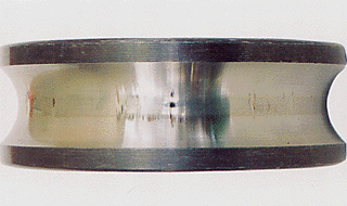 Part : Inner ring of a deep groove ball bearing Symptom : False brinelling on the raceway Cause : Vibration from an external source while stationary