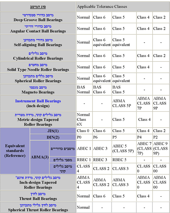 רמת הדיוק של מימדי המיסב ורמת דיוק פעולת המיסב, מצוינות באמצעות התקן הבא: