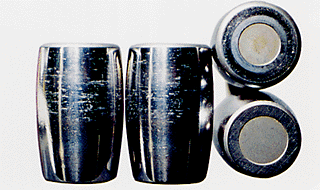 Part : Rollers of a double-row cylindrical roller bearing Symptom : Scoring. on the roller end facesCause : Poor lubrication and excessive axial load