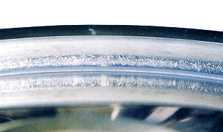 נזק ליניארי מופיע על היקף המסילה ומשטח הגליל.נזק בדמוי צורה ציקלואידית (קשת שנוצרת על ידי נקודה על ההיקף של עיגול כאשר הוא מתגלגל דרך קו ישר) מופיע על קצות הגלילים ומופיעה גם הבקעות על משטח הצלע המקשר את קצות הגלילים.