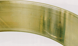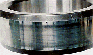 Part : Inner ring of a cylindrical roller bearing Symptom : Axial scratches on raceway surface