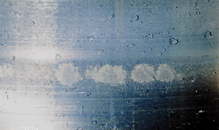 מנקודות דהויות שכאלו, נוצרים סדקים קטנטנים היורדים לעומק של 5 עד 10. µM חלקיקים קטנים נושרים ולעתים קרובות מתרחשת התפוררות קלה.