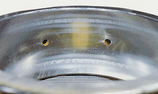Part : Convex rollers of Photo 2-1 Symptom : Rounded areas of Peeling on the center of the rolling surfacesCause : Poor lubrication