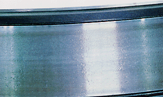 When debris such as small metallic particles are caught in the rolling contact zone, Denting occurs on the raceway surface or rolling element surface. Denting can occur at the rolling element pitch interval if there is a shock during the mounting
