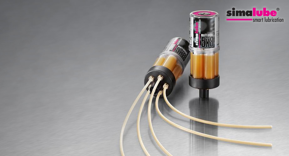 מגרזת SIMALUBE רב-נקודתית Multi Point)) בעלת 5 נקודות יציאה, מספקת באופן מהימן פריקה חומר סיכה לתקופה של עד ל-12 חודשים.