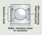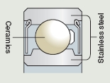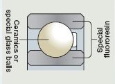 מיסבים משולבים. טבעות המיסב עשויות פלדת אל-חלד, כדורי המיסב עשויים מחומר קראמי, כלוב בעל גירוז-עצמי עשוי פלואורסצין. מתאימים לסביבה בעלת קורוזיה, תנאי אטמוספרה נורמאלים עד וואקום.