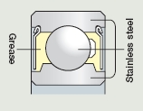 מיסבים מפלדת אל-חלד. בעלי גריז LG2/LGU. מתאימים לסביבת עבודה נקייה, בלחץ אטמוספרי רגיל בטמפרטורת חדר.