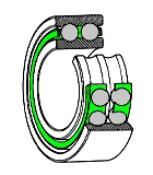 מיסב כדורי זוויתי בעל שתי שורות הוא למעשה מיסב המורכב משני מיסבים כדוריים זוויתיים בעלי שורה אחת המורכבים גב-אל-גב, כאשר למיסב ישנה טבעת פנימית אחת וטבעת חיצונית אחת. בכל אחת מהטבעות (המשותפות) ישנן מסילות מובחנות. מלבד עומס רדיאלי, מיסבים אלו יכולים לשאת עומס צירי בכל כיוון.