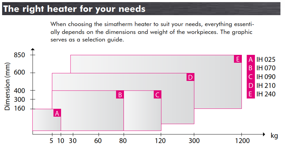 לבחירת מחמם מתאים, להלן גרף שמסכם את משפחת מחממי SIMATHERM: